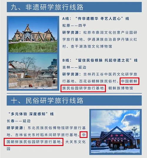길림성문화관광청은 길림성 10대 테마수학려행 정품코스를 발표했다. 홍색, 생태, 문화박물관, 과학기술 및 여러 령역을 포괄하는 19갈래 주제수학코스가 있다.그중에서 중국조선족민속원은 비물질문화유산 수학려행코스와 민속 수학려행...