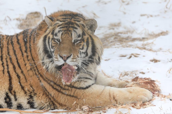 한차례 봄눈이 지나간 후 호랑이들은 점점 더 활약적인 움직임을 보였다. 새하얀 눈속에서 털빛이 선명한 동북호랑이 몇마리가 흑룡강성동북호림원내에서 한적한 정원을 거닐며 ‘봄날 맹호희설도(春日猛虎戏雪图)’를 그렸다.동북호림원은 ...