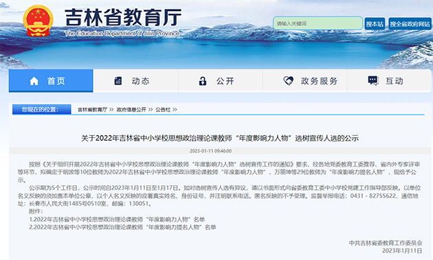 길림성 중소학교 사상정치리론과목 교사 ‘년도 영향력 인물’ 공포, 연변 4명 선정