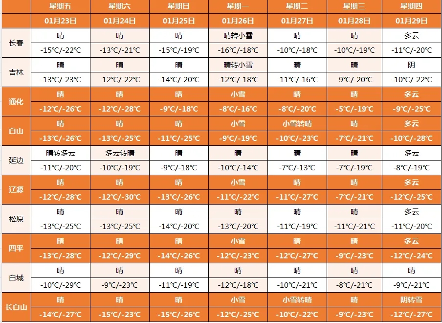 길림성 대면적 강설 예상