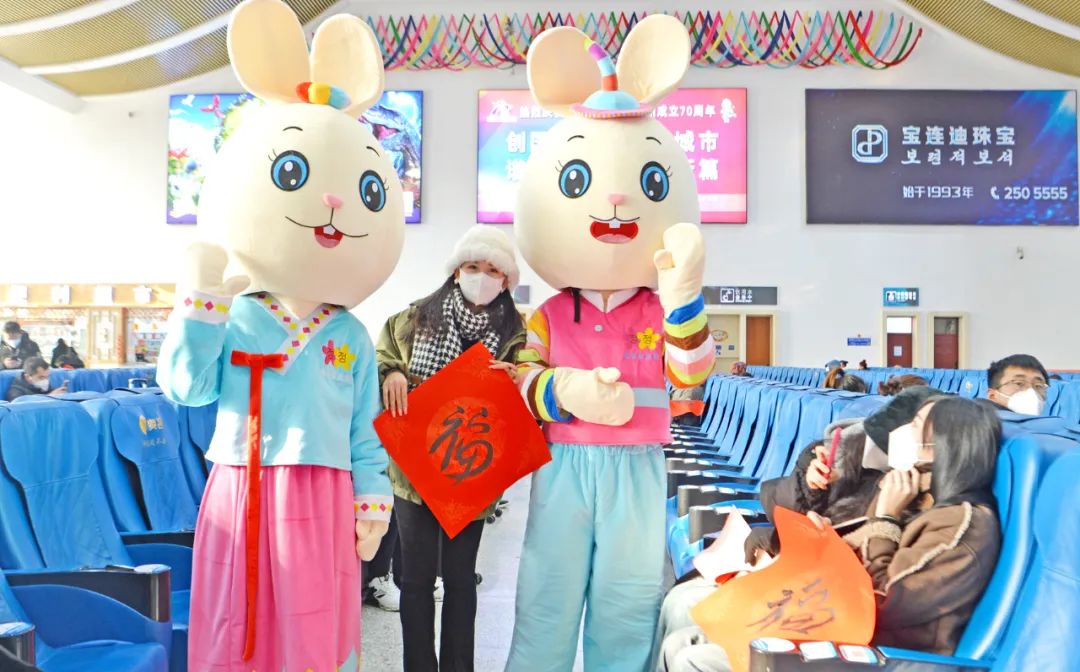 1월 7일, 연길서역에서는 토끼해를 기념하는 민속마스코트 '정정'과 '청청'을 출시했는데 이는 분발하고 용감하게 전진하는 정신면모로 새로운 로정에 올라설 것을 의미한다.연변라지오TV넷 연변방송APP출처
