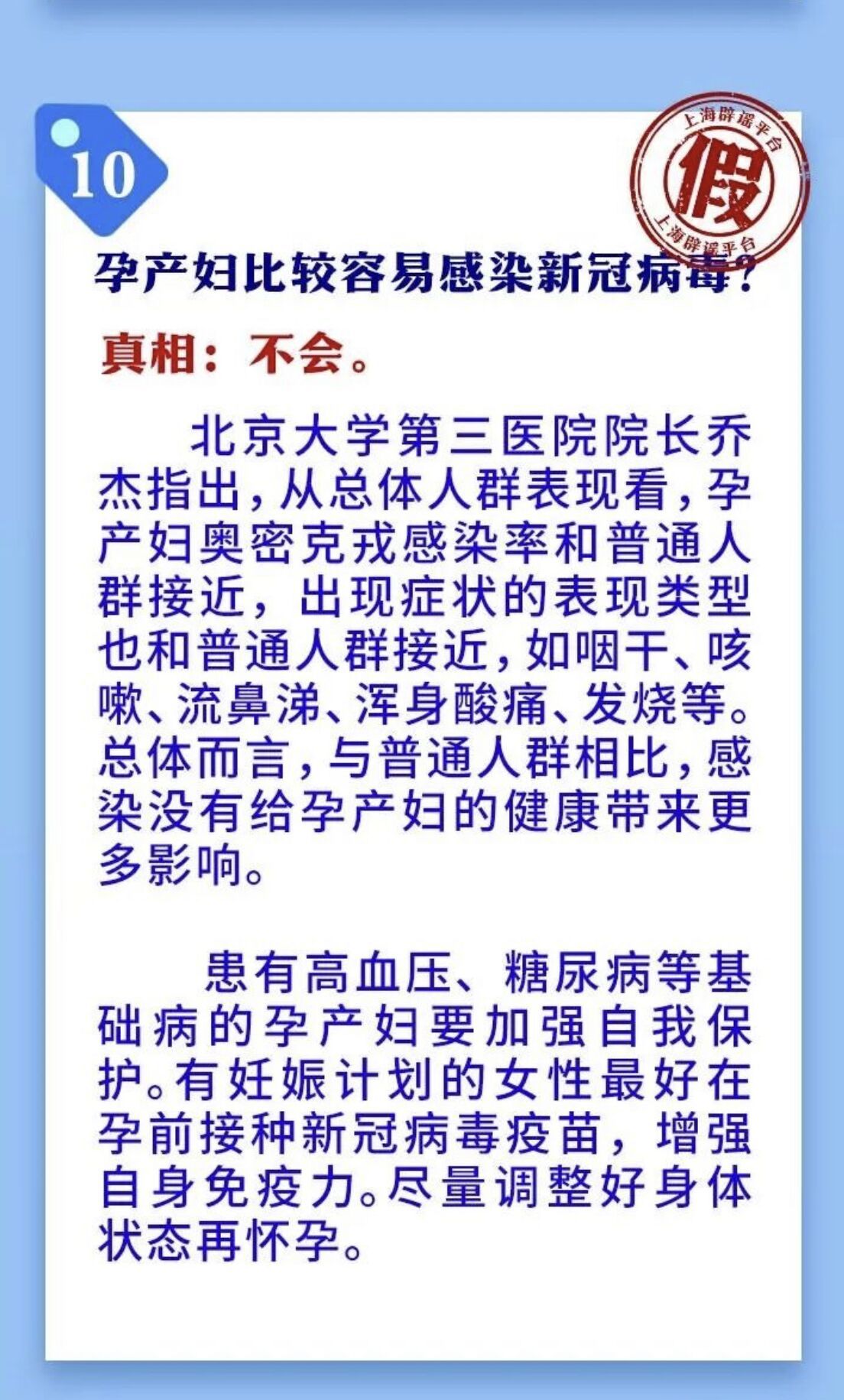 그렇지 않다.북경대학 제3병원 원장 교걸은 다음과 같이 지적했다. 전반적으로 볼 때 임산부의 오미크론 변이 바이러스 감염률은 일반인들과 비슷하고 나타나는 증상도 비슷하다. 이를테면 목이 마르고 기침하며 코물이 나고 온몸이 쑤...