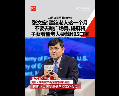 장문굉: 한달내에 전염병상황 고봉 온다! 로인 특히 주의해야!