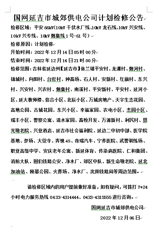 [알림] 연길시 전력공급회사 계획검수 공고!