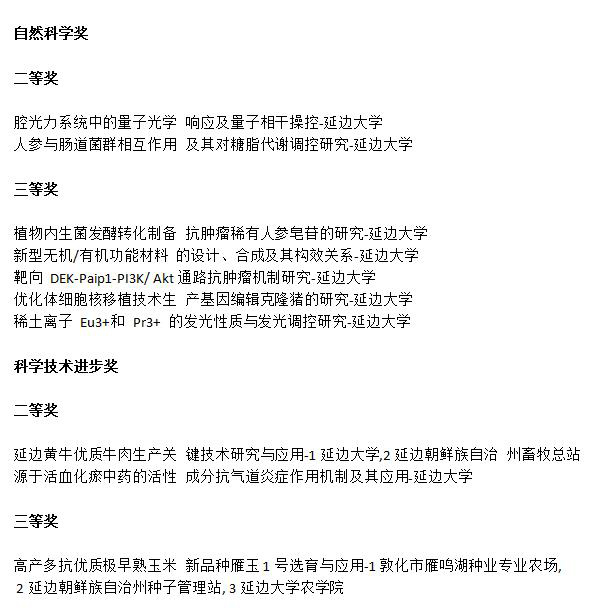 2022년 길림성과학기술상, 연변대학 10개 항목 수상