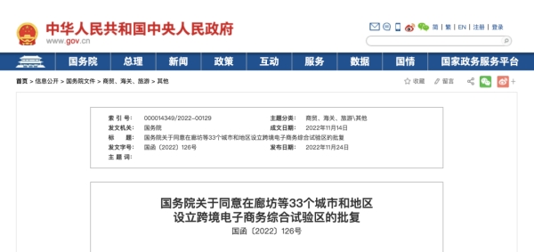 11월 24일, 중국정부넷은 <랑방 등 13개 도시와 지역에 다국적전자상거래종합실험구를 설립하는 것을 동의할 데 관한 국무원의 회답>을 발부했다.국무원은 랑방시, 창주시, 운성시, 포두시, 안산시, 연길시, 동강시, 방부시,...