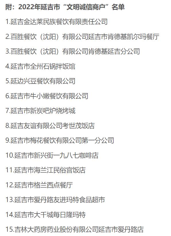연길시 266개 ‘문명성실상가’ 발표! 명단 첨부→