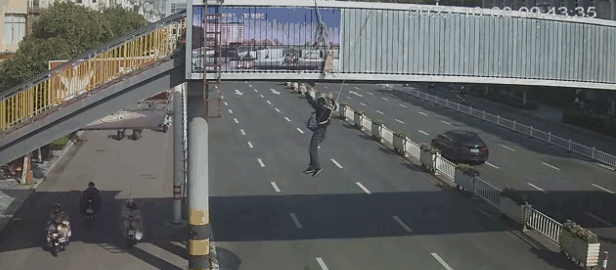 륙교에서 작업하던 로동자 떨어져 허공에 매달려, 다음 장면 네티즌 극찬!