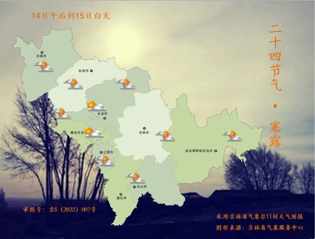 고공랭기압의 영향으로 16일 새벽부터 우리 성은 서에서 동으로 점차 기온이 하락하면서 4~5급 편북풍을 동반하게 된다. 이 기간에 기온은 보편적으로 8~12℃ 하락하고 부분적 지역은 13℃ 이상 하락하게 된다. 최저기온은 1...