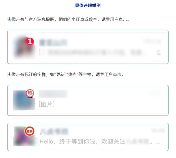 위챗 공식계정 플랫폼운영쎈터의 8월 12일 소식에 의하면 최근 공식계정의 프로필사진으로 공식 소식알림을 조작하는 것을 통해 사용자가 클릭하도록 유도하는 행위를 비교적 많이 발견했다고 한다. 사용자를 오도하고 교란하는 것을 피...