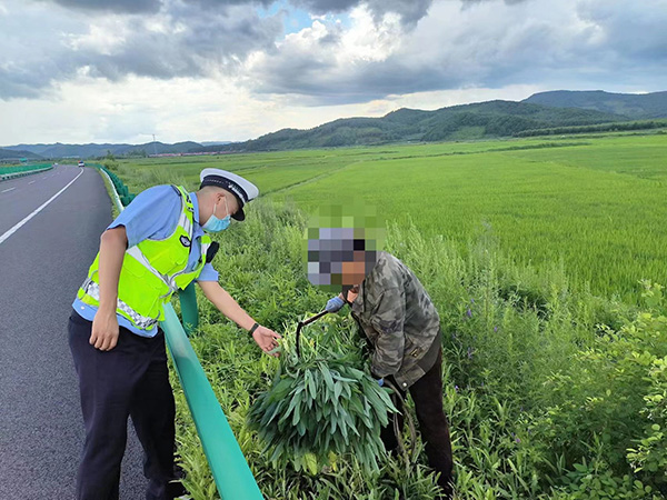 모두가 알다 싶이 고속도로는 완전 페쇄식 관리 자동차통행 전용도로로서 보행자와 비동력차량은 고속도로 진입을 허용하지 않는다. 하지만 일부 보행자들이 들풀을 베고 들나물을 캐기 위해 자신의 안전을 돌보지 않고 고속도로에 진입하...