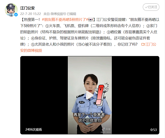 경찰 당부: 위챗 모멘트에 이 5가지 사진 올리지 말아야
