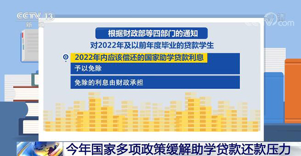 국가조학대출을 신청한 학생들은 공부하는 기간 어떠한 대출상환부담도 없지만 졸업후 본금과 리자를 개인이 부담해야 한다. 갓 졸업한 이런 대학생들의 부담을 덜어주기 위해 국가는 올해 리자면제와 본금상환 연기정책을 출범했다.재정부...