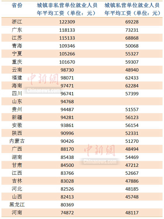 각지 2021년 평균로임데터가 륙속 발표되고 있다. 불완전통계에 의하면 7월 3일까지 25개 성(자치구, 직할시)에서 2021년 평균로임데터를 공개했다.6개 성, 도시진 비사영단위 년평균로임 10만원 초과각지에서 발표한 데터...