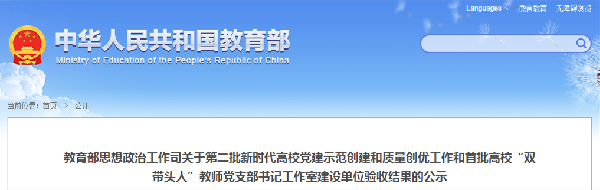 5월 24일, 교육부 사상정치사업사는 제2진 새 시대 대학교 당건시범건설, 품질우량사업과 첫 대학교 ‘쌍선줄군(双带头人)’ 교원 당지부서기작업실 건설단위 검수결과를 공시했다. 9개 대학교 당위, 98개 학과 당조직, 990개...