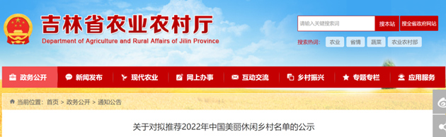 2022년 중앙과 길림성당위 1호 문건 정신을 관철락착하고 <2022년 중국 아름다운 레저향촌 추천활동을 전개할 데 관한 농업농촌부 판공청의 통지> 요구에 따라 전성의 레저농업과 농촌관광의 질 높은 발전을 도모하기 위해 길림...