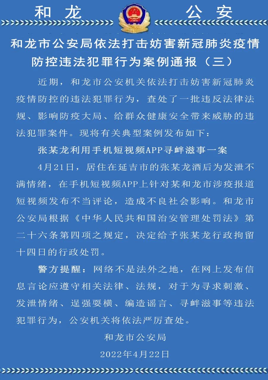 화룡시공안국 한차례 전염병 관련 위법범죄 전형사건 통보!