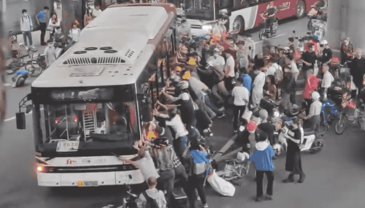 하나 둘 셋! 하나 둘 셋!3월 31일 광주시 해주구수십명의 시민이구호를 웨치면서버스를 옮겨부상당한 젊은 남성을구하려고 시도하였다이 장면은수많은 네티즌을 감동시켰다남성이 차바퀴에 눌려수십명의 시민 구조 실시사고가 발생할 때는...