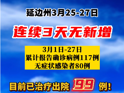 3월 25일-27일 , 우리 주 련속 3일 신규 확진병례 발견되지 않아...99례 치유 퇴원!