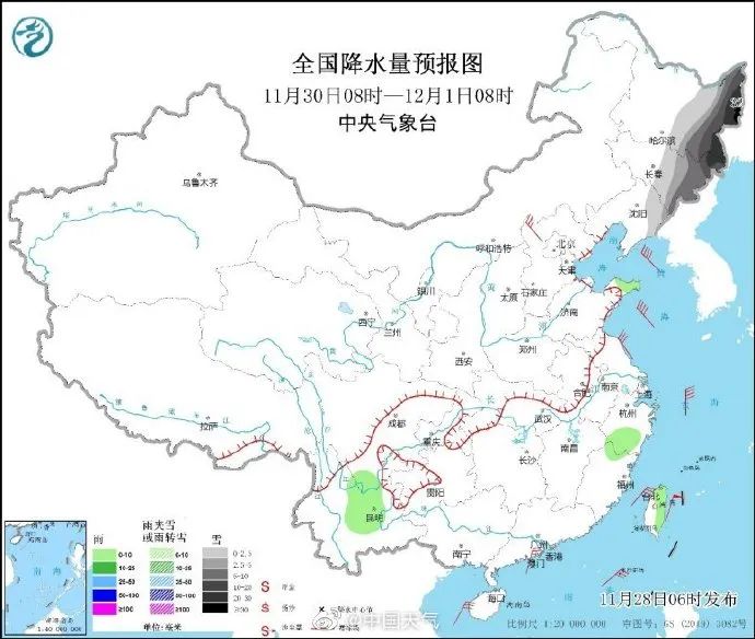 랭기압의 영향으로 11월 29일부터 12월 1일까지 서북지역 동부, 동북지역 대부분, 화북 대부분 지역의 기온이 6~8℃ 하락할 전망이다. 그중 흑룡강 동남부, 길림 동부, 료녕 동북부는 기온 하락폭이 12℃에 달하게 된다.