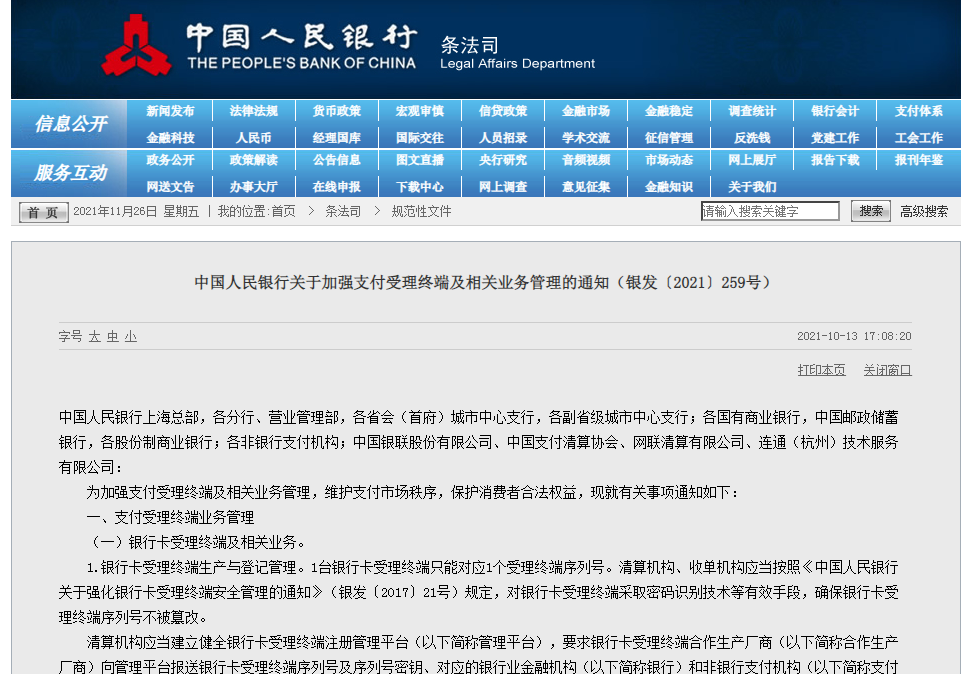 최근 “2022년 3월 1일부터 개인수금코드를 영업성 결제에 사용하지 못한다”는 보도가 인터넷을 도배했다. 2021년10월13일 중국인민은행 관변측 사이트가 발표한 “지불처리 단말 및 관련 업무관리를 강화할데 관한 통지”는 ...